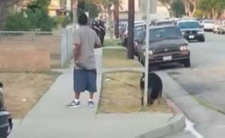 بالفيديو : رجال الشرطة قتلوا كلب حاول منعهم من اعتقال صاحبه