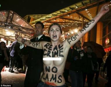 بالفيديو: نساء يتظاهرن عاريات بمهرجان برلين السينمائي احتجاجا على الختان