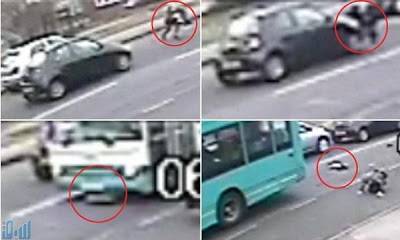 بالفيديو.. صدمتها سيارة ودهستها حافلة و"نجت بحياتها"