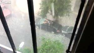بالفيديو.. شخص يحمي سيارته بجسده بطريقة غبية من تساقط الأمطار