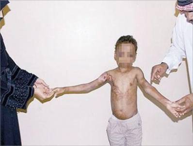 والدان يعذبان طفلهما بالماء المغلي ! "صورة"