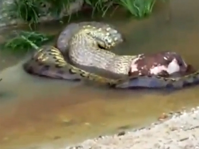 بالفيديو… أفعى ابتلعت بقرة ولفظتها أمام الكاميرات