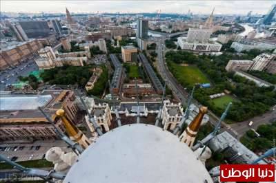بالصور.. شاب روسي يتسلق معلم شاهق دون وسائل حماية