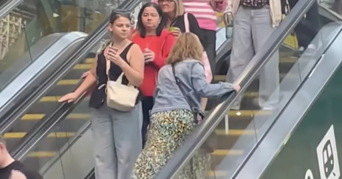 محاكمة امرأة لسيرها بالاتجاه الخاطئ على السلم الكهربائي