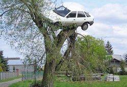 وضعوا سيارته على شجرة عقابا له على أسلوب قيادته