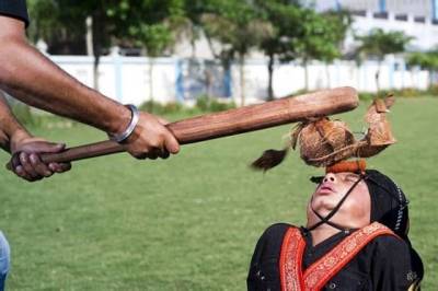 "أشرس" طفل يستمتع بتحطيم جوز الهند على رأسه