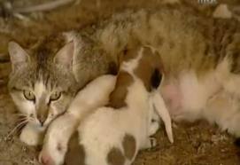 بالفيديو - قطة تلد " كلبين " جنوب عمان