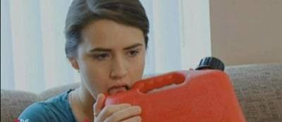 امرأة تمشي على البنزين: شربه يؤلمني لكنه يشعرني بحالة جيدة! "صور "