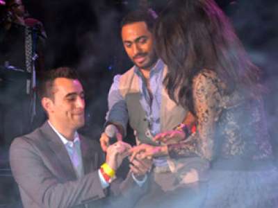 في سابقة جديدة.. تامر حسني يعلن خطوبة شاب وفتاة في حفله!