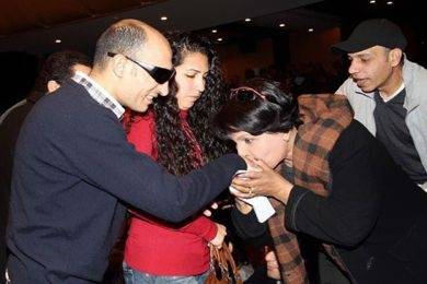 الفنانة فردوس تقبل يد شاب فقد عينه بالثورة المصرية يثر جدلا صورة