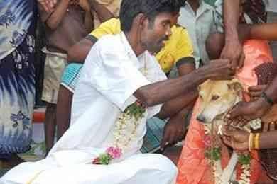 هندي يتزوج (كلبة) والمعازيم يهنئوه في حفل زفافه