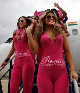 عارضات مثيرات يعرضن الملابس الداخلية داخل الطائرة