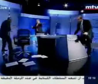 خلاف بين سياسين لبنانيين حول سوريا احدهما بعثي والاخر من تيار المستقبل يتحول للضرب بالكراسي امام المشاهدين شاهد الفيديوا