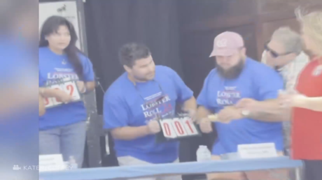 شاهد.. حاكم ولاية أمريكية ينقذ رجلا اختنق أثناء مسابقة للمأكولات البحرية