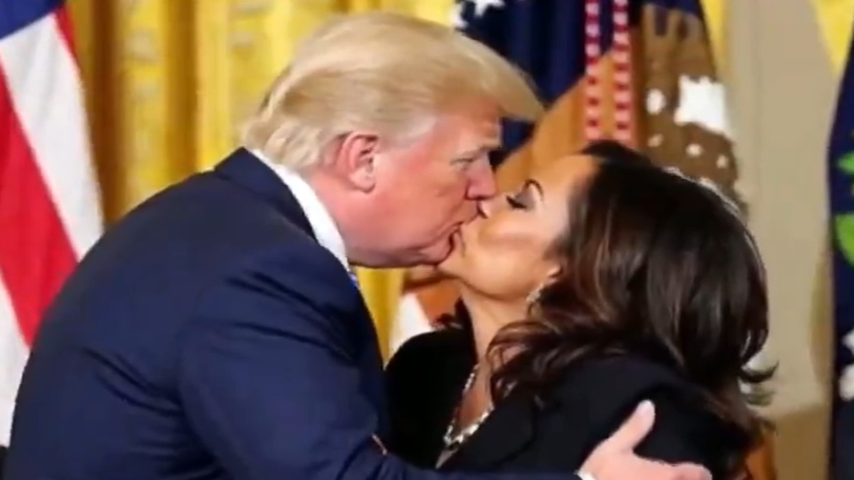 قبلة "ترامب" و"هاريس" تثير تفاعلا على مواقع التواصل (فيديو)
