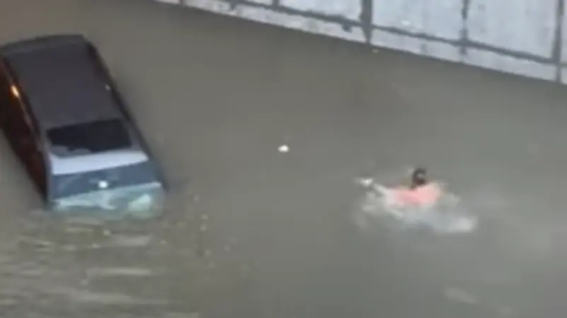 فيديو.. مصرفي مصري بالإمارات ينقذ عائلة من الغرق داخل السيارة