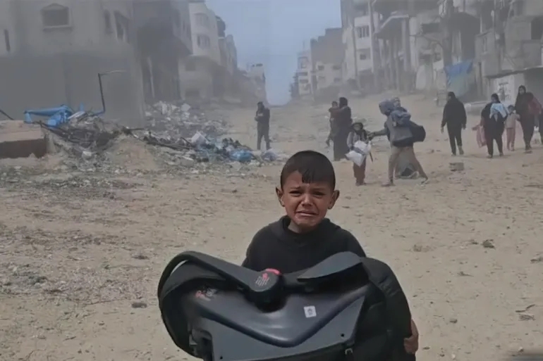 "وحياة ربنا خايف" .. مشاهد توثق لحظات هلع وخوف طفل بمحيط مجمع الشفاء