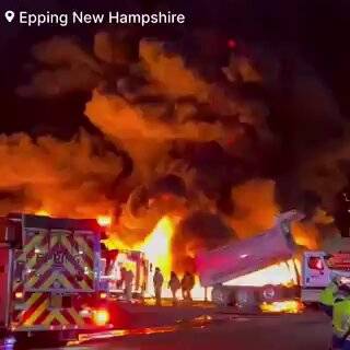 بالفيديو .. فرق إطفاء تحاول إخماد حريق كبير ب3 خزانات نفط في نيوهامشير الأميركية