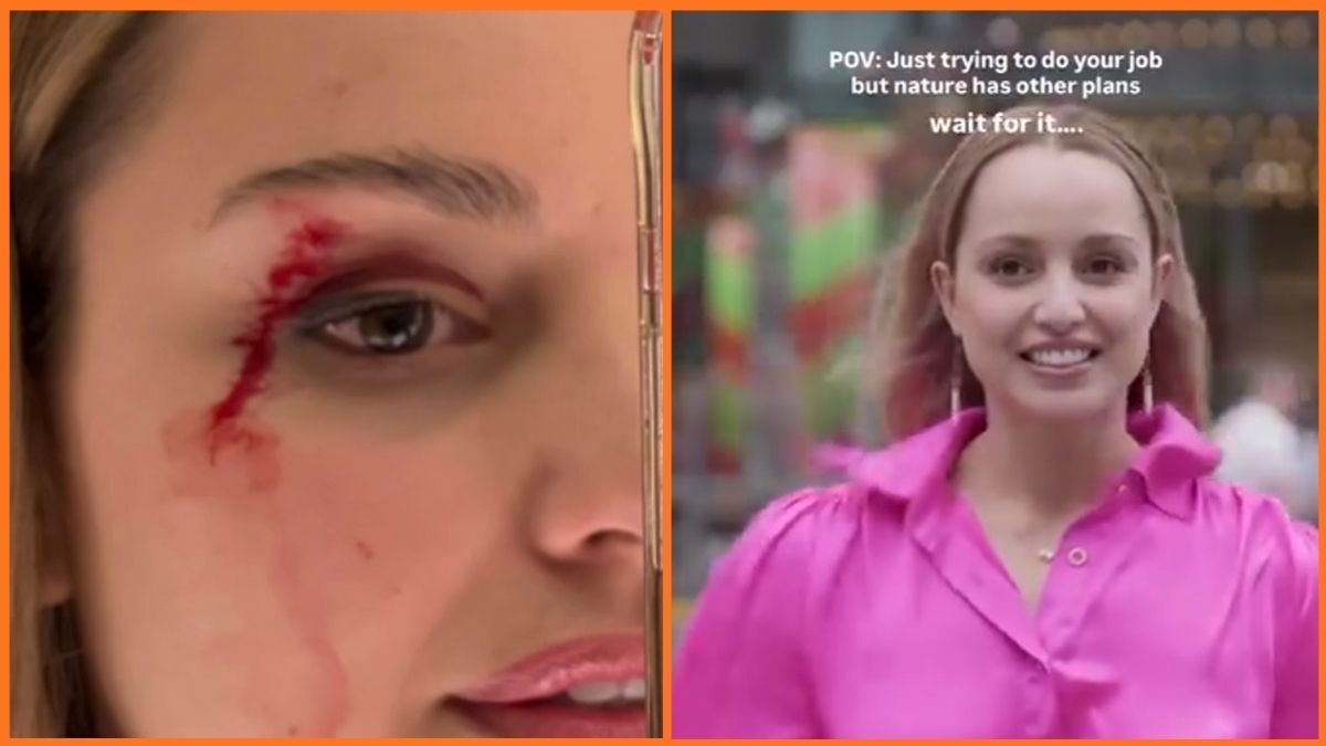 طائر يصطدم بوجه مراسلة نيوزيلاندية على المباشر ويصيبها بجروح (فيديو)