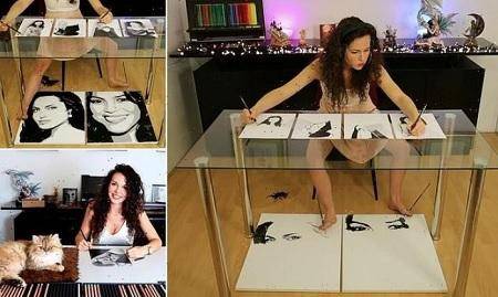فنانة ترسم بيديها وقدميها في نفس الوقت