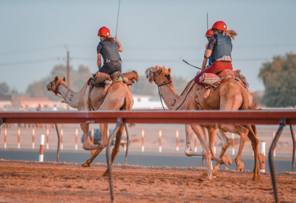 النساء يقدن الطريق في أول مدرسة لركوب الإبل في دبي