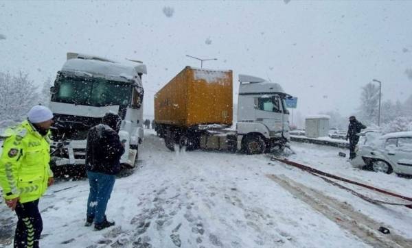 انزلاق شاحنة بفعل الثلوج في تركيا - فيديو