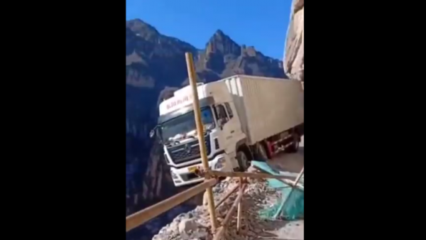 فيديو مخيف لشاحنة على "حافة الهاوية"