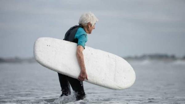 عمرها 92 عاما.. عجوز تمارس رياضة ركوب الأمواج