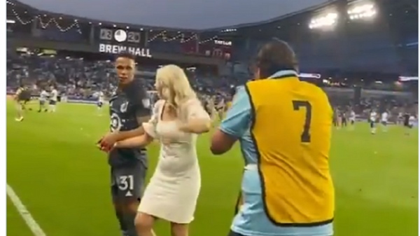 لاعب أمريكي يفاجئ صديقته على أرض الملعب