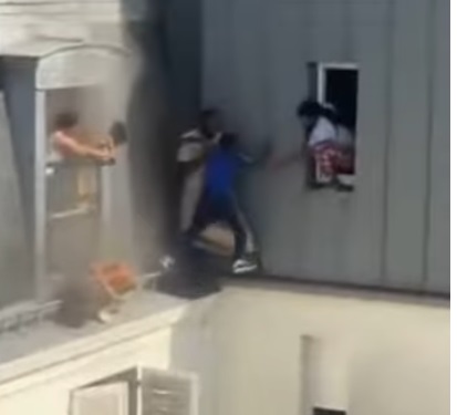 شاهد... على ارتفاع 6 طوابق.. شجاعة رجل تنقذ جيرانه من كارثة