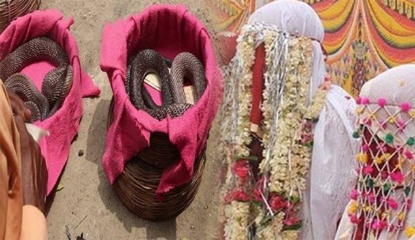 عروس هندية تقدم 21 أفعى سامة لعريسها في يوم الزفاف