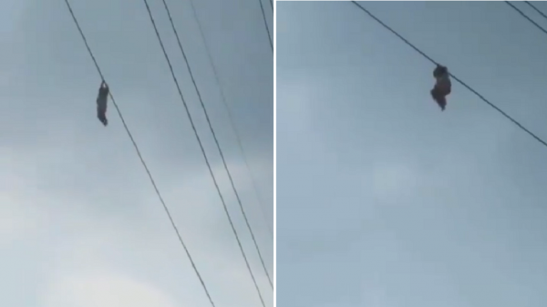 فيديو صادم لصبي معلق بسلك كهرباء على علو 15 مترا!