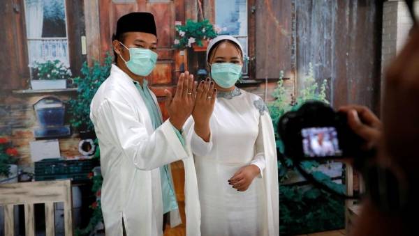 عروسان إندونيسيان يقيمان زفافهما "أون لاين"