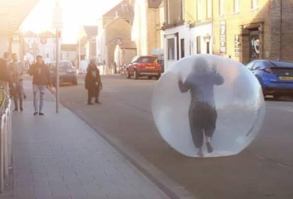 شاهد.. تضع نفسها داخل بالون للتنقل وتفادي كورونا