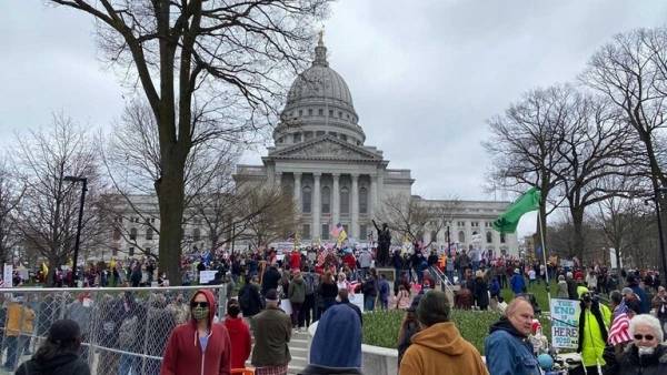 محتجون يطالبون حاكم ويسكونسن الأمريكية بإعادة فتح الولاية
