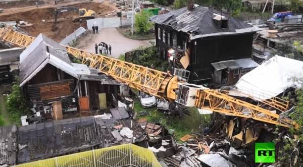 شاهد لحظة سقوط رافعة في منطقة سكنية بمدينة روسية