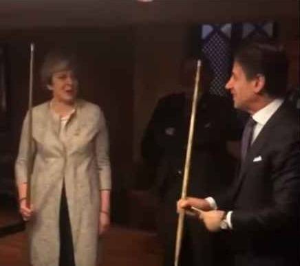 رئيس وزراء ايطاليا يتحدى رئيسة وزراء بريطانيا في " البلياردو"