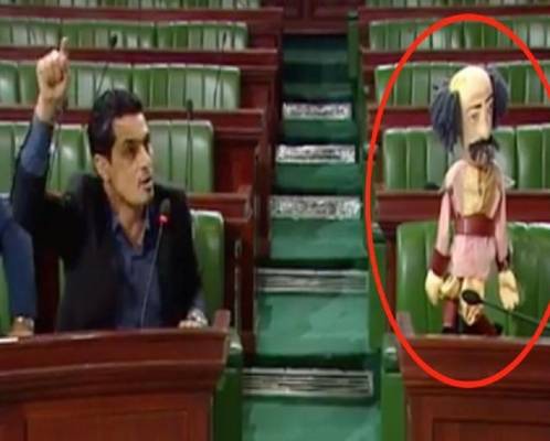 بالفيديو .. بسبب غياب وزير عن جلسة مسائلة في البرلمان .. نائب تونسي يحضر "دمية" مكانة