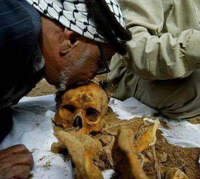 فلسطيني يقبل جمجمة ابنه