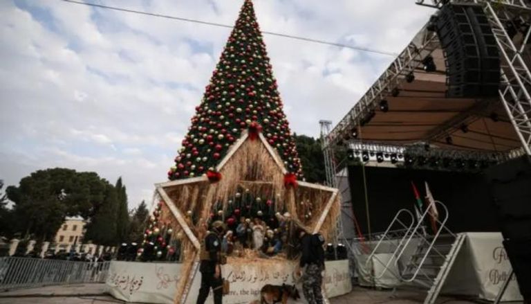 لأول مرة منذ عامين.. إضاءة شجرة الميلاد بكنيسة المهد في بيت لحم