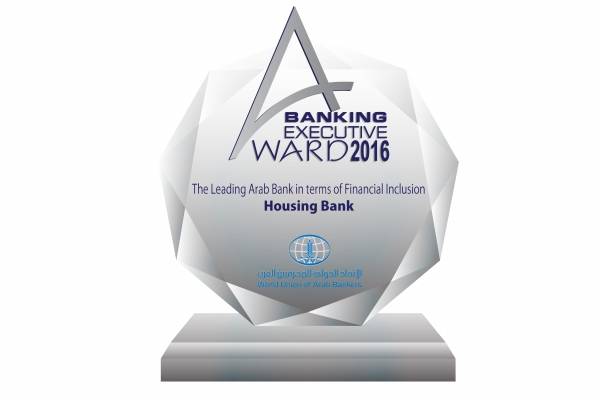 بنك الإسكان يفوز بجائزة " البنك الرائد في الوطن العربي في الشمول المالي "