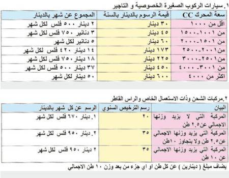 80 مليون دينار إيرادات الحكومة المتوقعة من رسوم ترخيص المركبات