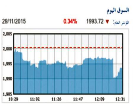 الـرقم القياسي لأسعار الأسهم يتـراجع دون حاجـز الــ 2000 نقطة