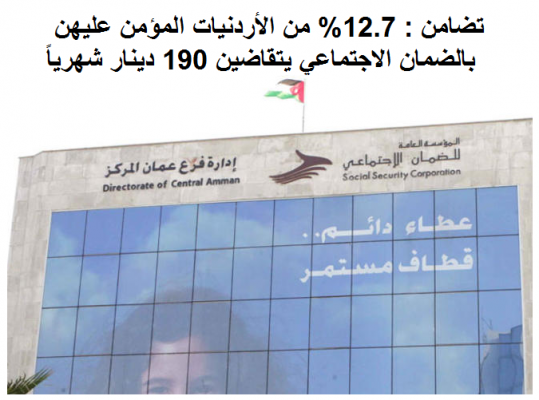 84% من الأردنيات المؤمن عليهن بالضمان الاجتماعي يتواجدن بمحافظة العاصمة