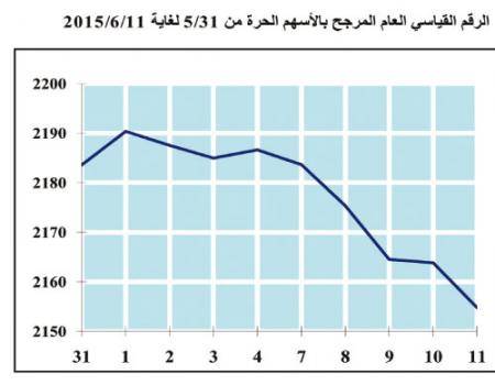 المؤشر العام يتراجع 1.46% وحجم التداول يرتفع إلى 58.2 مليون دينار