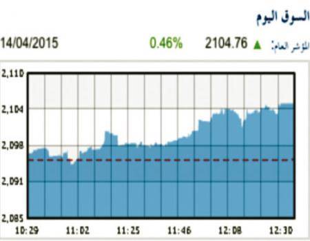 مؤشر البورصة يرتفع إلى 2104.76 نقطة