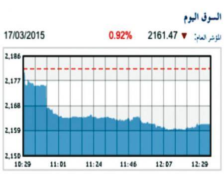 مؤشر البورصة ينخفض إلى 2161 نقطة