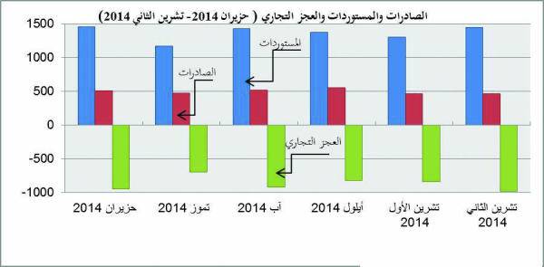 9.4 مليار دينار العجز التجاري في المملكة خلال 11 شهرا من 2014