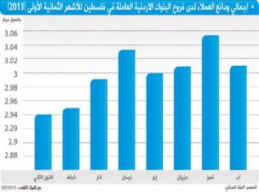البنوك الأردنية تستحوذ على 56 % من ودائع العملاء في فلسطين
