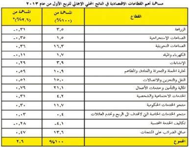 الناتج المحلي الإجمالي ينمو بنسبة 2.6 % لنهاية الربع الأول